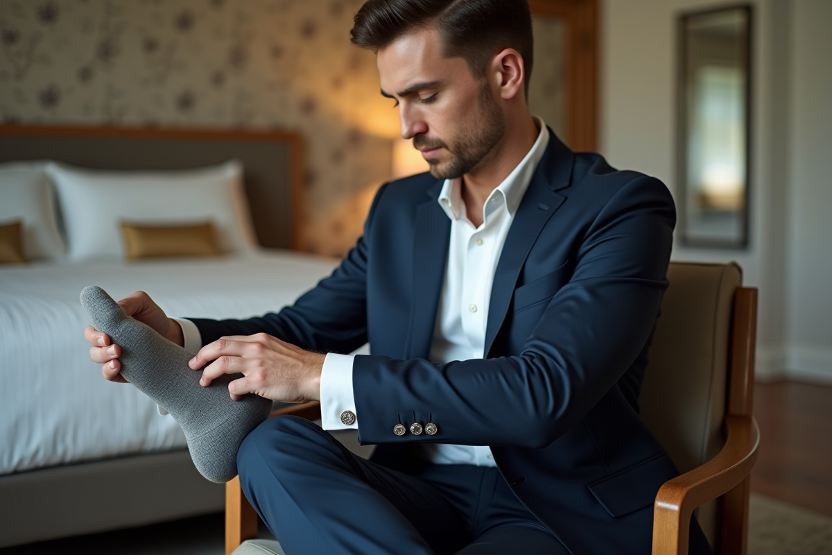 L’équation se complique quand entrent en jeu le thème ou la saison de la cérémonie. Mariage bucolique ? Les chaussettes pastel ou en coton écru épousent parfaitement l’ambiance. En hiver, la laine mérinos et les nuances intenses réchauffent la tenue. Les puristes privilégient des couleurs pour tenues sobres, tandis que d’autres invitent un motif discret, clin d’œil à l’air du temps.
